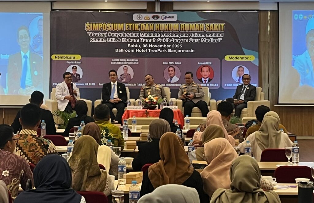 Biddokkes Polda Kalsel menggandeng Perhimpunan Rumah Sakit Seluruh Indonesia (PERSI) Kalsel dan AMKESI (Asosiasi Mediator dan Kesehatan Indonesia), menggelar Simposium Etik dan Hukum Rumah Sakit, di Treepark Hotel, Sabtu (7/11/2025).
